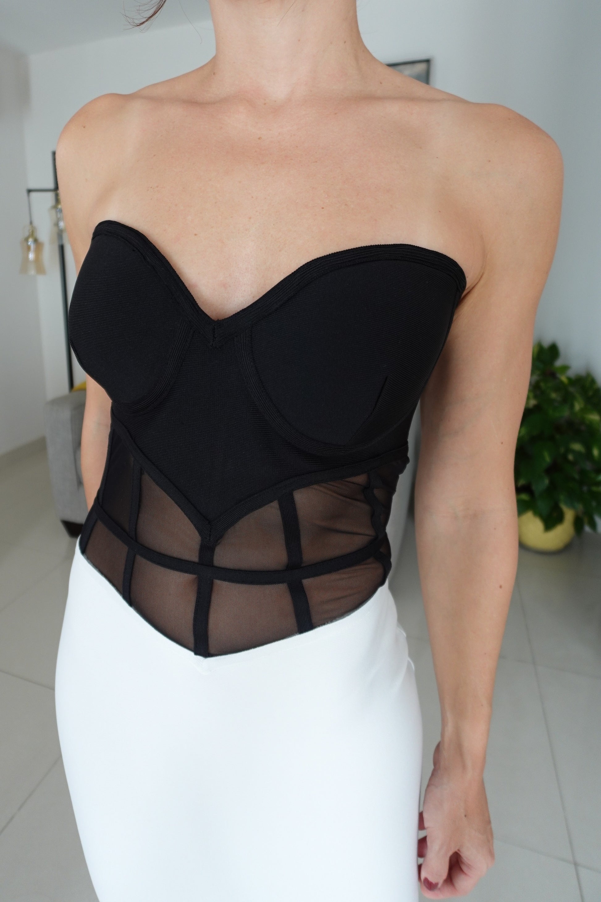 - Bandage Two Tone Mesh Corset Maxi Dress