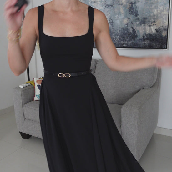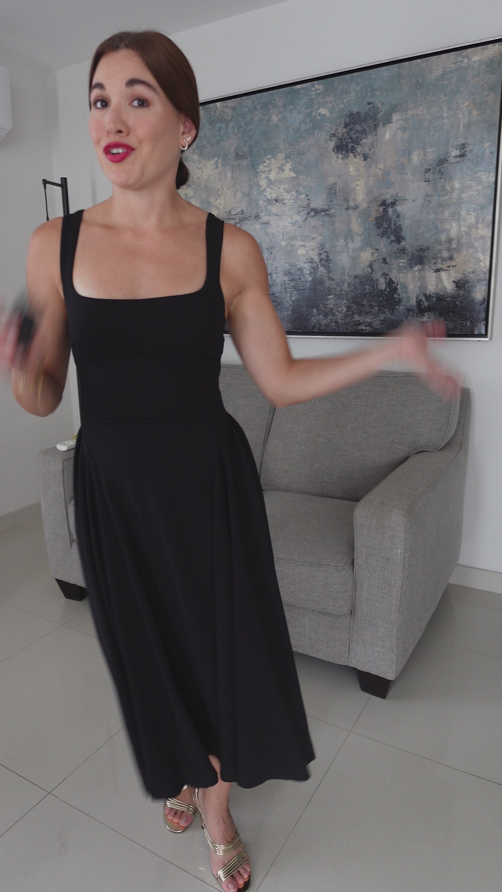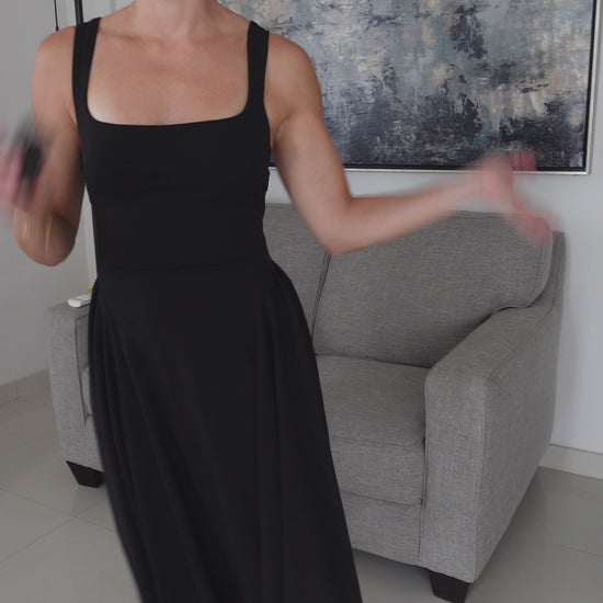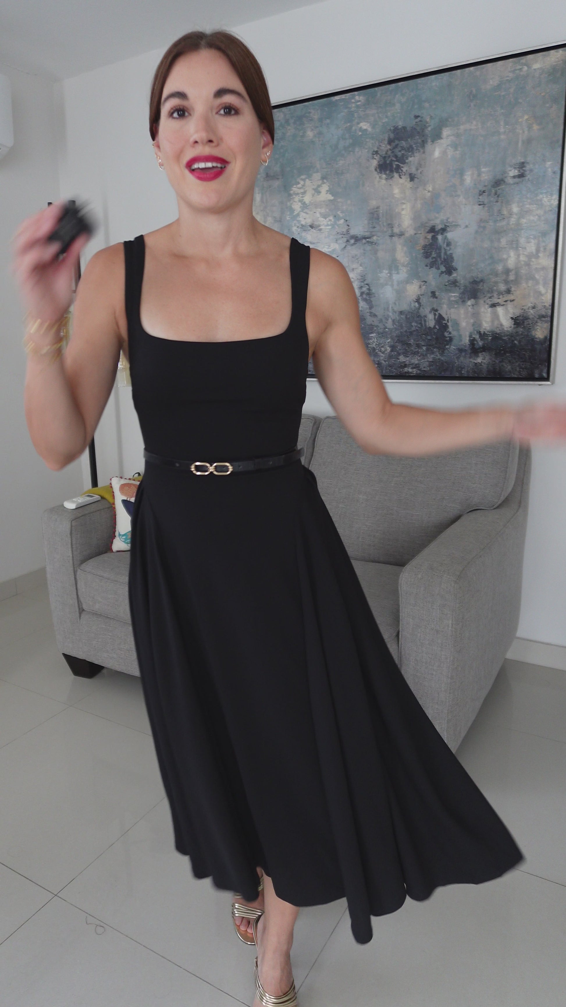- flattering fitted bodice that flows into a voluminous, pleated skirt