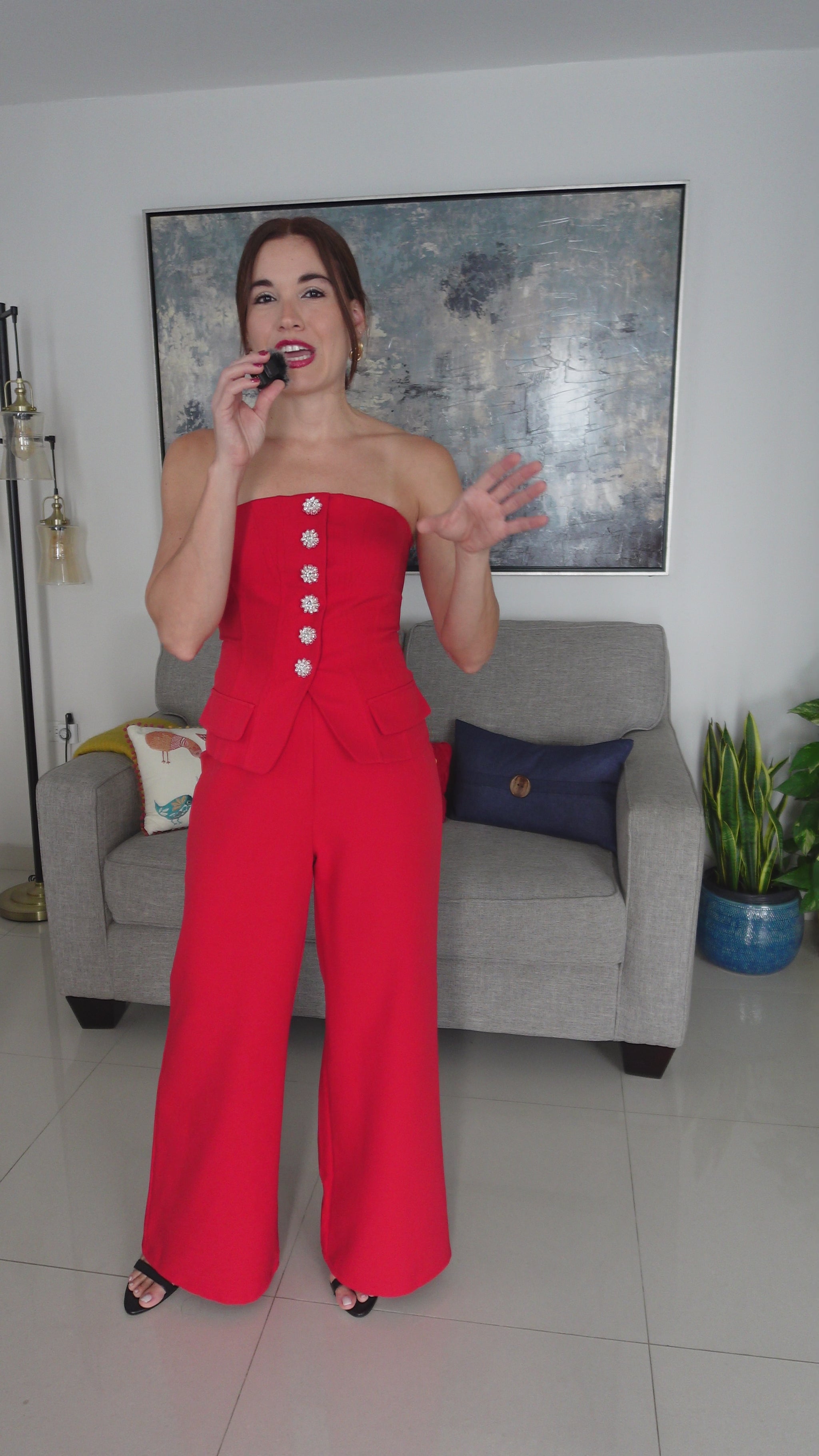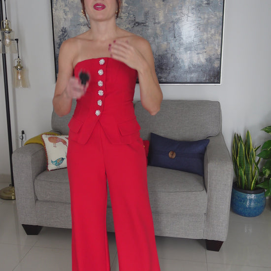 Fabric Contents: Self: 87% Polyester, 13% Spandex / Lining: 100% Polyester