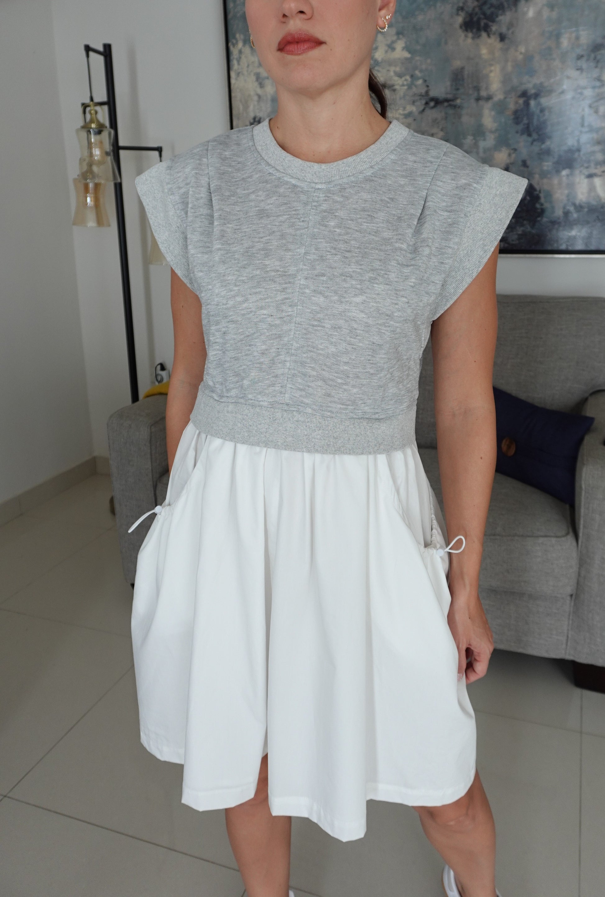 Sporty Mixed Media Drop Shoulder Terry Mini Dress