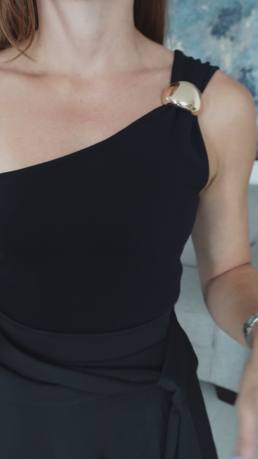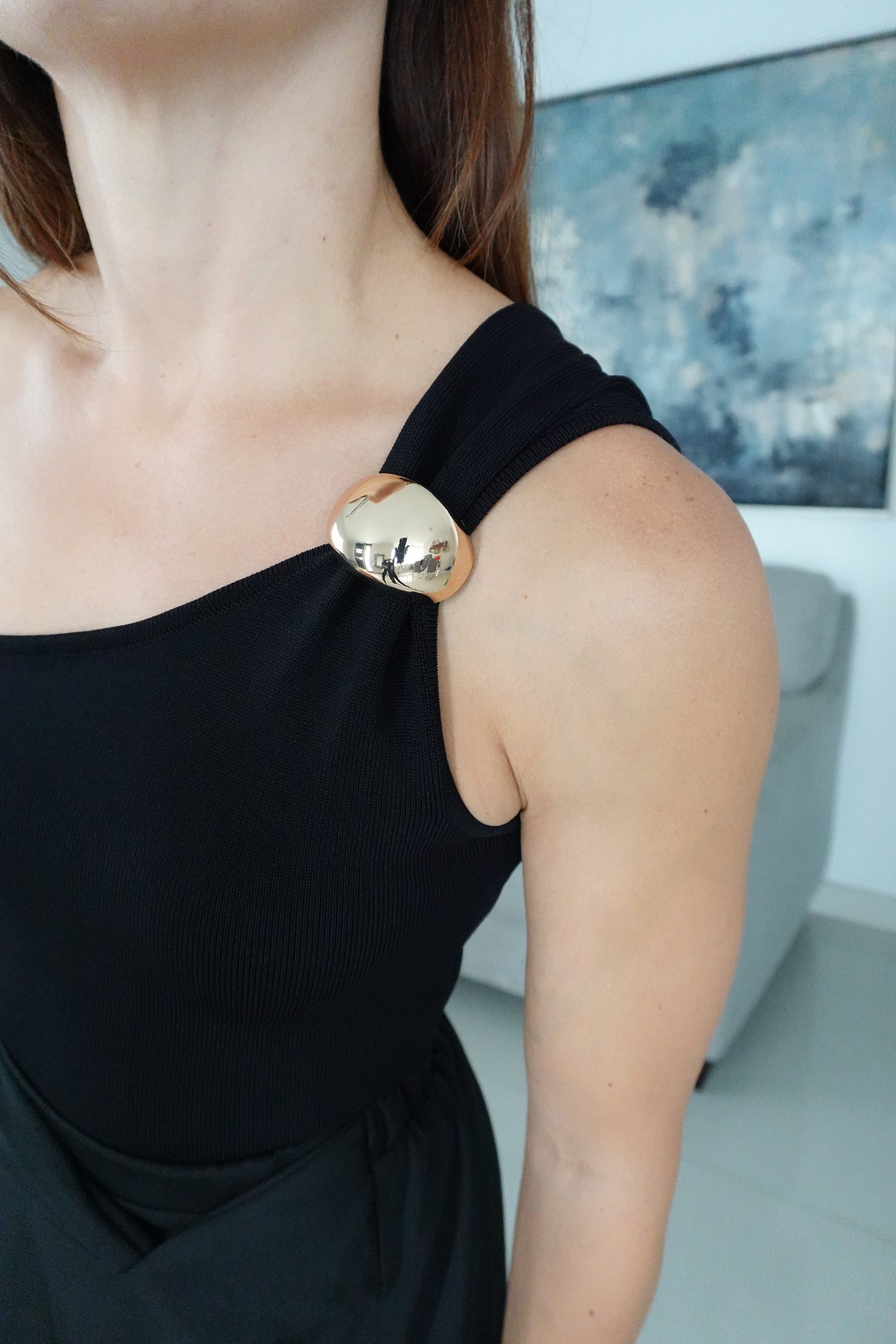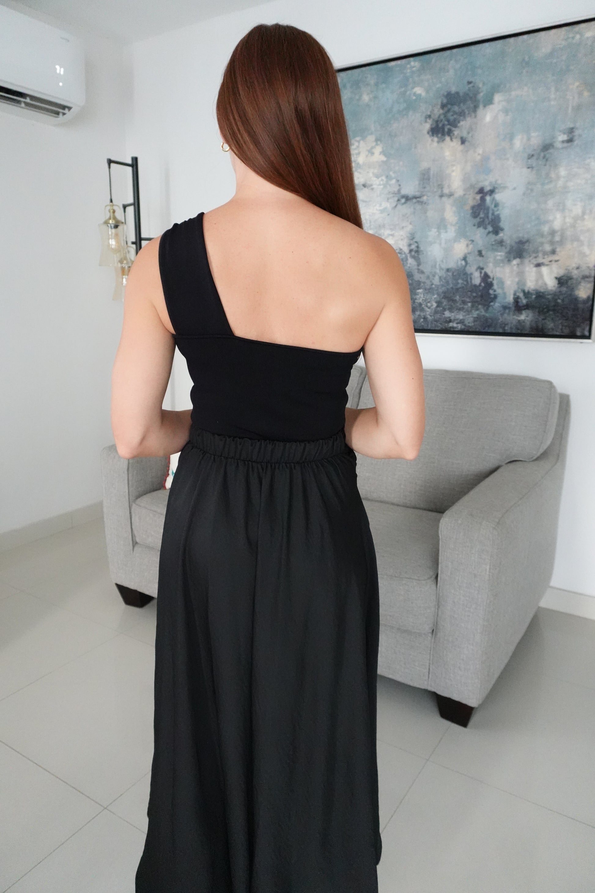 One shoulder top with trim detail.