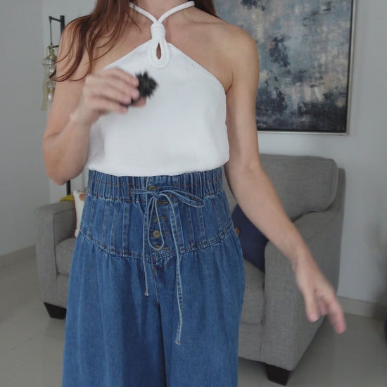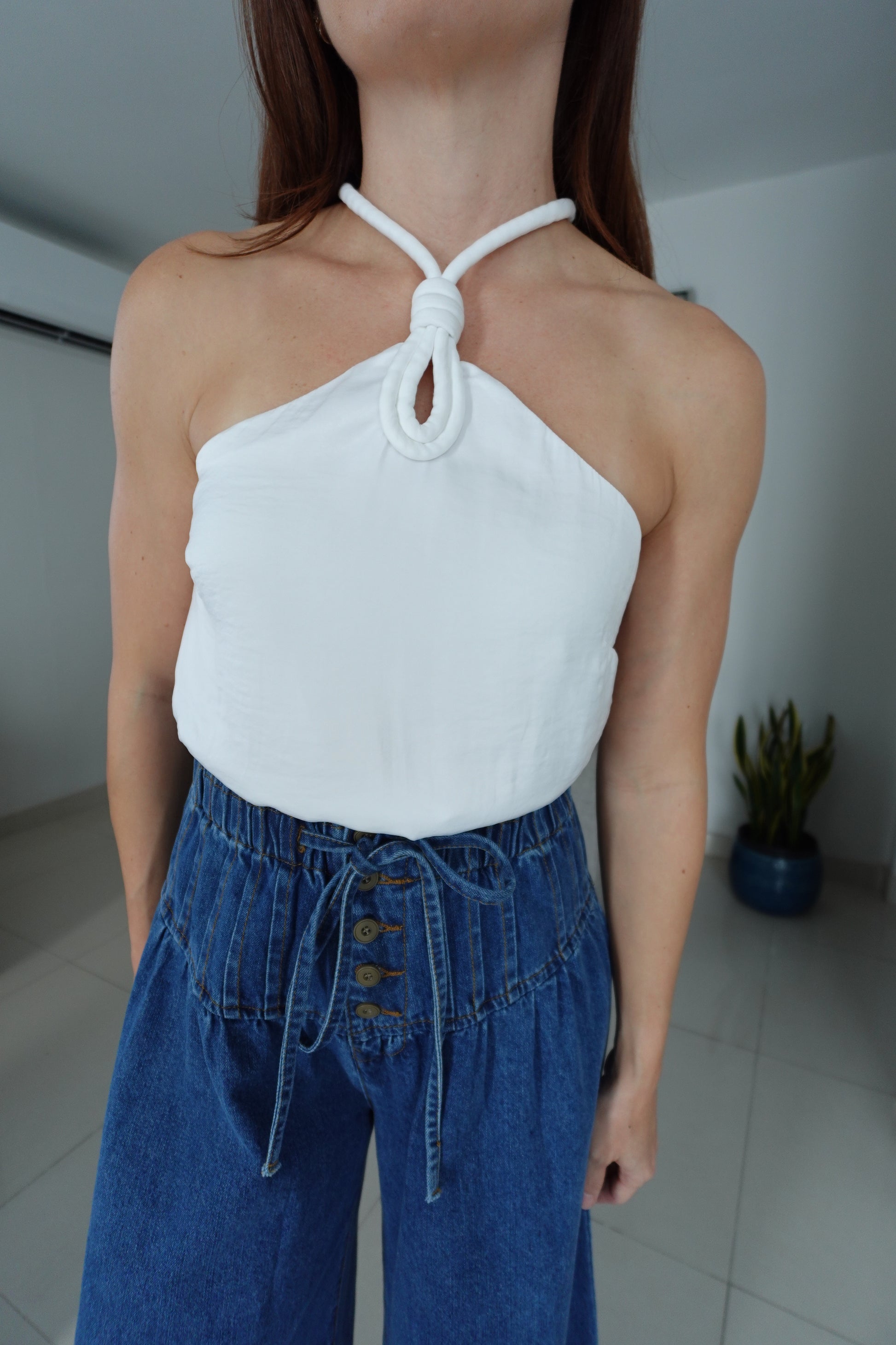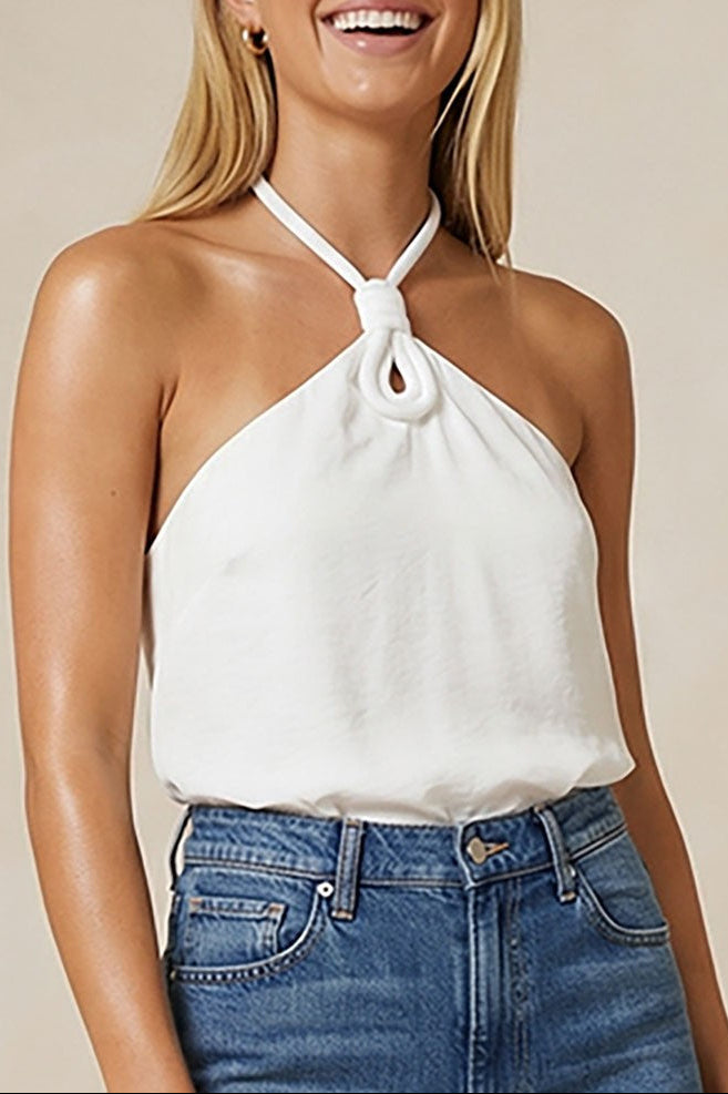 - Halter style neckline with cord keyhole detail
